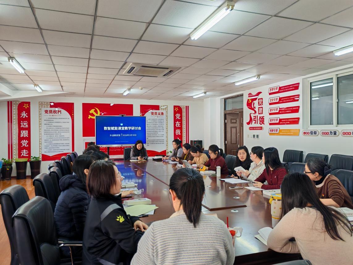 为深入推进教学改革,依托数智技术优化外语课堂教学模式、提升教学效率与质量,3 月 18 日,基础教学部外语教研室在教学楼 520 会议室组织开展数智赋能课堂教学研讨会,教研室全体教师参加本次会议。