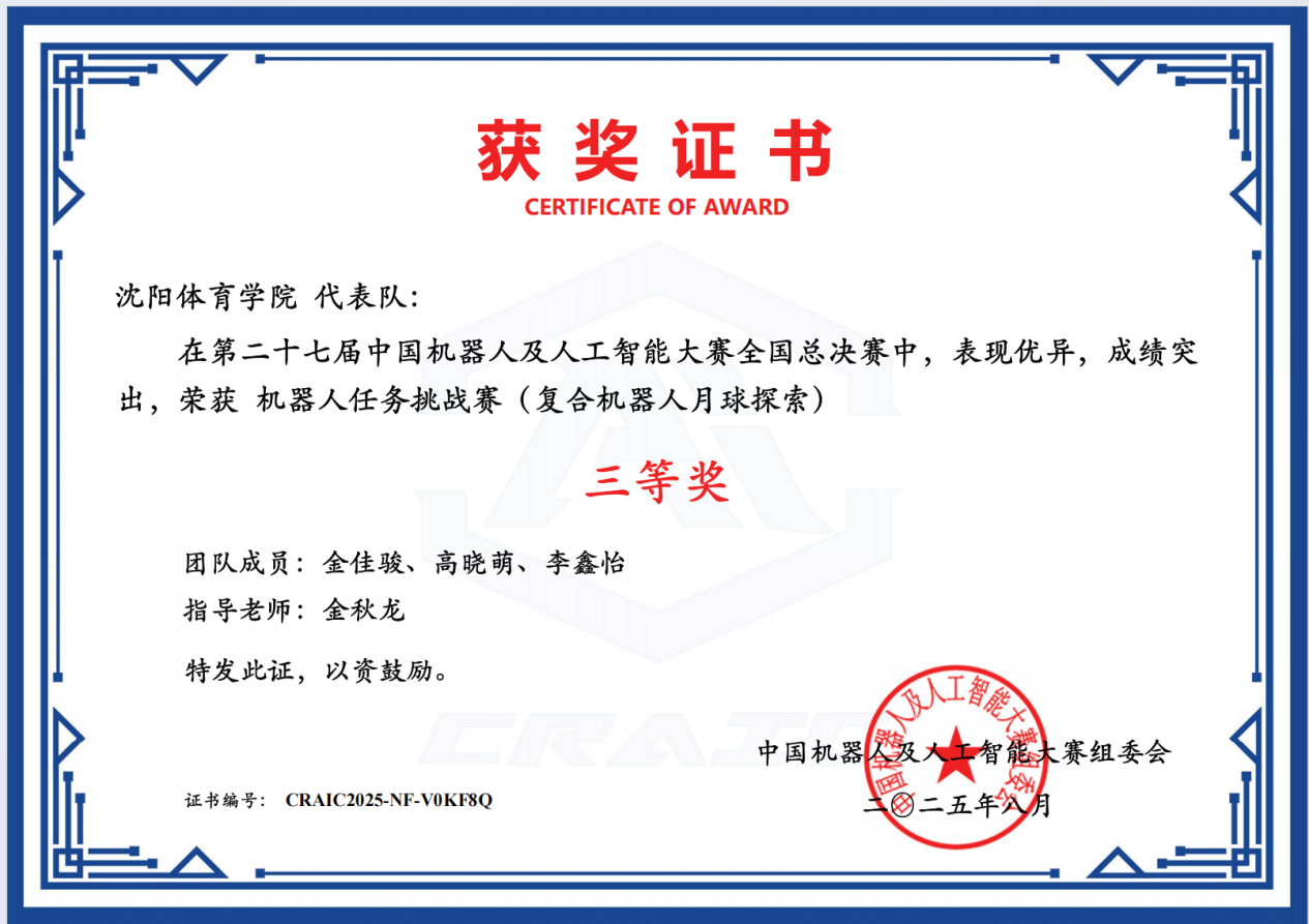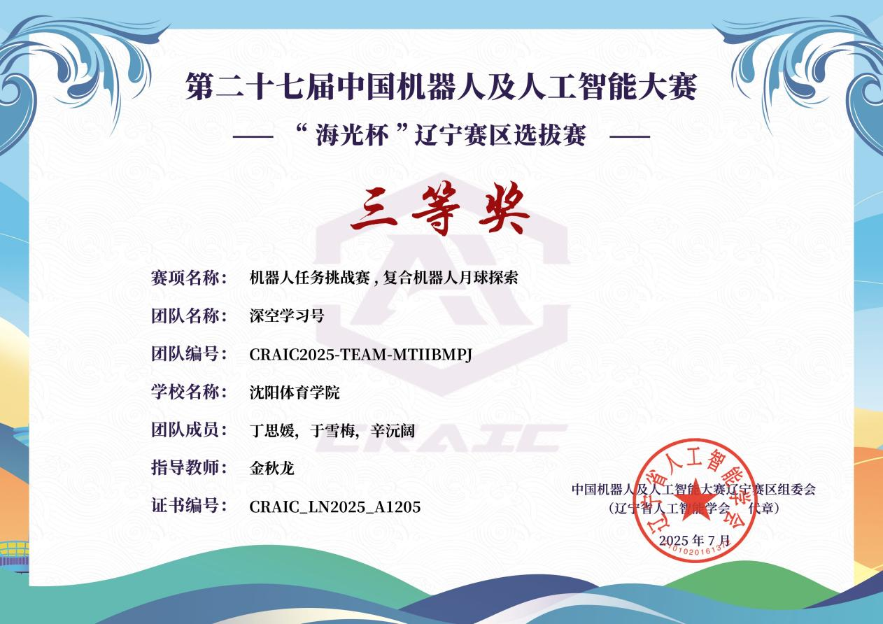 在第二十七届中国机器人及人工智能大赛中,金秋龙老师带领的两只学生队伍表现优异,分别荣获机器人任务挑战赛(复合机器人月球探索)国赛三等奖和省赛三等奖的优异成绩。